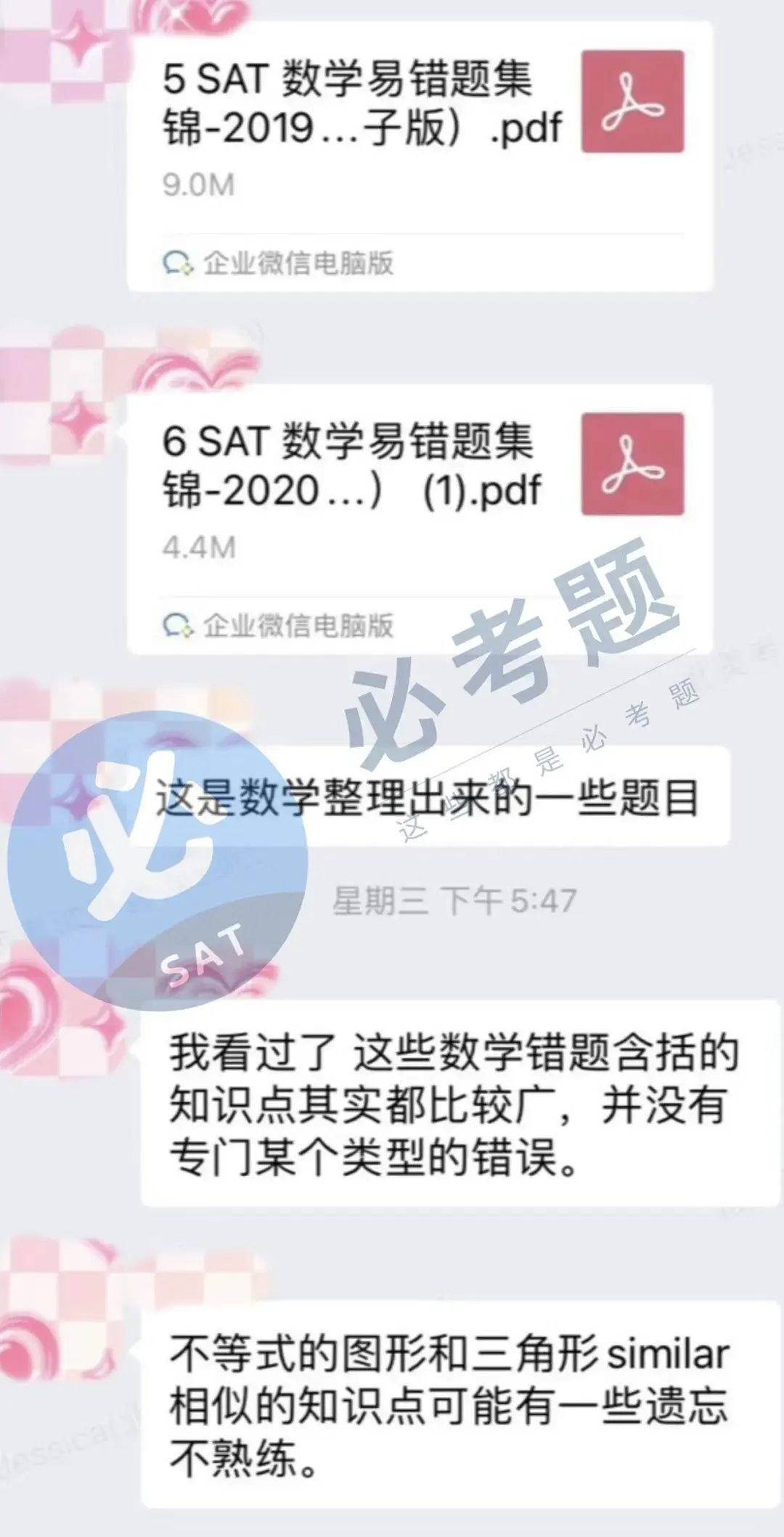 除此之外,数学老师根据我对每个考点和出题方式的掌握情况,为我整理出了数学易错题集。我也在课后完成了这些练习。对于当中一些不确定的题或不熟悉的考点,我也在学习群和数学老师进行了交流。